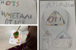 Στη συνέχεια, τα παιδιά αποτύπωσαν μέσα από ζωγραφιές το πώς φαντάζονται την OTS, φτιάχνοντας έργα γεμάτα δημιουργικότητα και αυθεντικότητα.